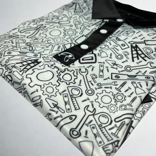 White trimmings, white design with black print